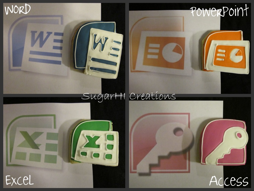 Here they are! This is the other set that Rhonda asked us to create for her business students, 4 of the logos from Microsoft Office...Word, Excel, Powerpoint and Access. These were a bit of a challenge but we were so happy with the results...and so was she!